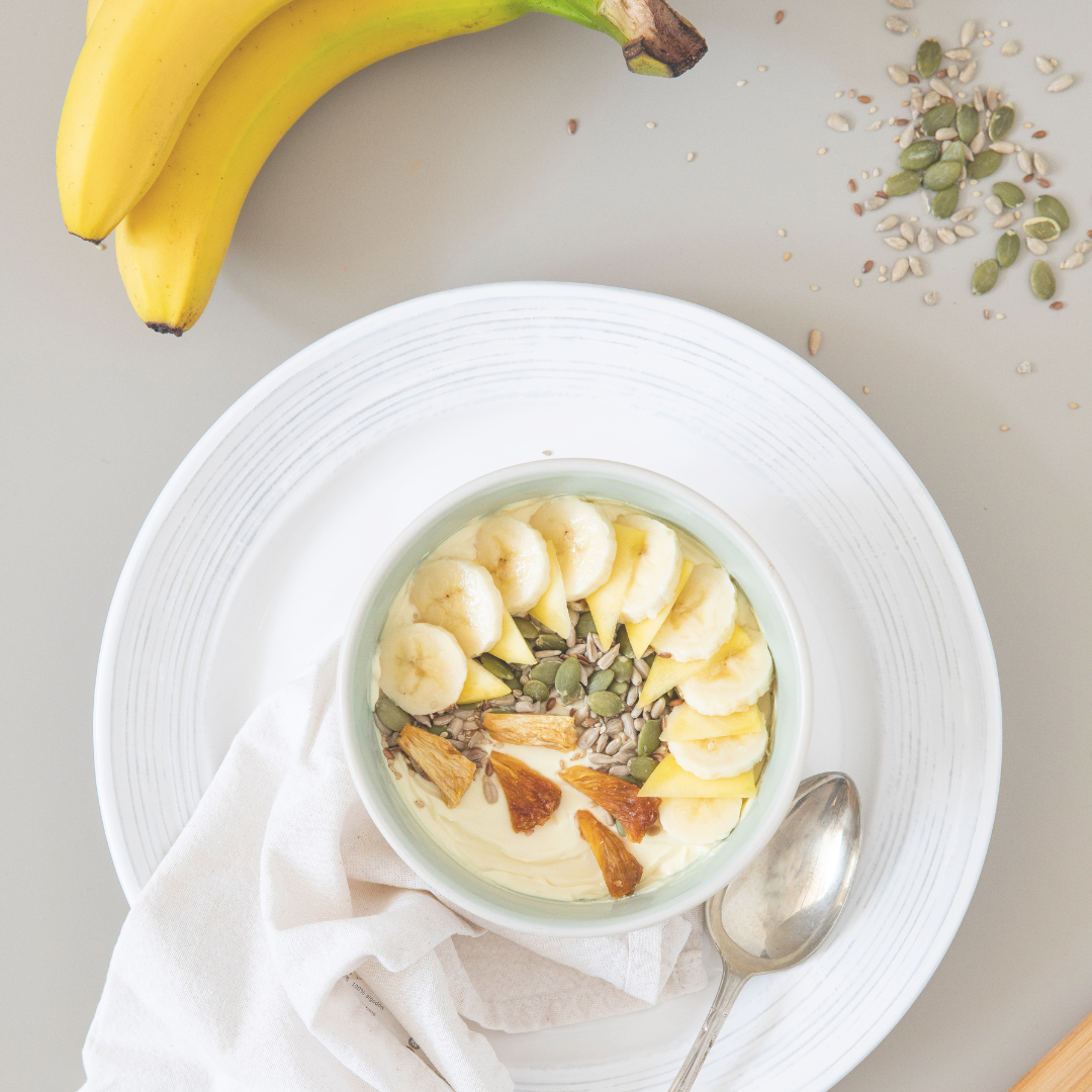 Bananen, Ananas, getr. Ananas, Kürbiskerne und Sonnenblumenkerne nach Belieben